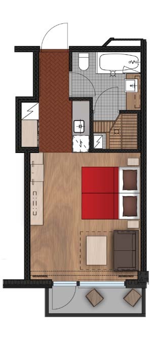 Hotelli RukaVillagessa yhdistyy hotellihuoneen ja huoneiston parhaat puolet. RukaVillage30 hotellihuoneessa on 2x90 cm vuoteet ja pieni oleskelualue. Lisäksi huoneessa on keittiö, pesuhuone/wc, oma sauna sekä parveke. Huoneessa oleva sohva on muutettavissa lisäpedeiksi. Sohva mukaan lukien makuupaikkoja on 2+1 (sohva soveltuu lisäpediksi yhdelle aikuiselle tai kahdelle lapselle).